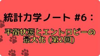 熱力学 統計力学ノート#6:平衡状態とエントロピーの最大化 (第2回) あくまで個人的にまとめたノートなので、誤っている箇所があるかもしれません。参考にする際は内容の正当性について注意してくだ... 2025.09.22 熱力学