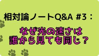 相対論 相対論ノート:Q&A #3 なぜ光の速さは誰から見ても同じ? あくまで個人的にまとめたノートなので、誤っている箇所があるかもしれません。参考にする際は内容の正当性について注意してくだ... 2025.09.17 相対論