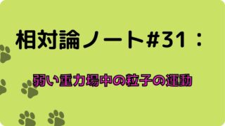 相対論 相対論ノート【補足】弱い重力場中の粒子の運動 – 第31回 あくまで個人的にまとめたノートなので、誤っている箇所があるかもしれません。参考にする際は内容の正当性について注意してくだ... 2025.09.13 相対論