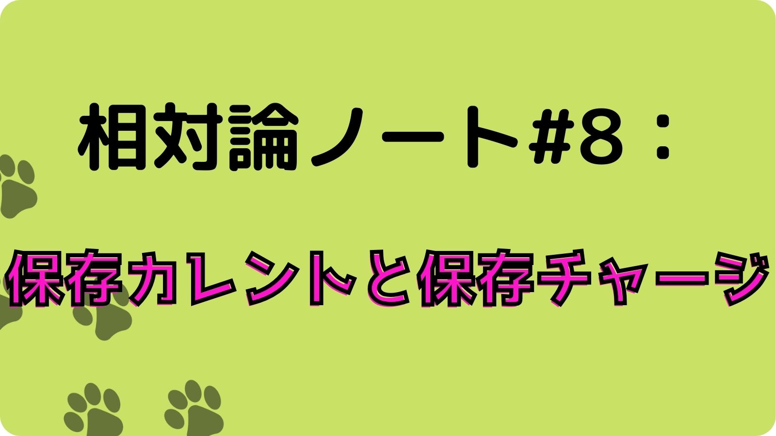 例えば、前回のノートで解説した「4元運動量」も、保存カレントの一種として考えることができます。4元運動量の0成分はエネルギー、空間成分は運動量に対応し、これらの保存則は、4元運動量の発散がゼロになるという形で表現できます。